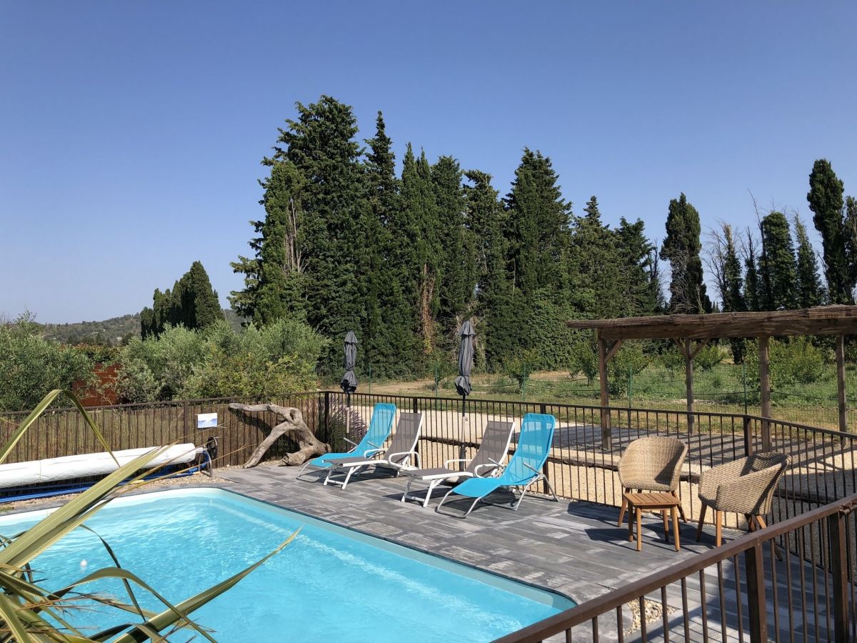 Gîte de France. Villa de 125 m² totalement indépendante, idéalement située en pleine campagne, à moins d’ 1 km des commerces du village. Au calme, sans vis-à-vis, et avec la vue sur le massif de la Montagnette. Terrain de 1 000 m² clos, piscine privée chauffée, sauna.