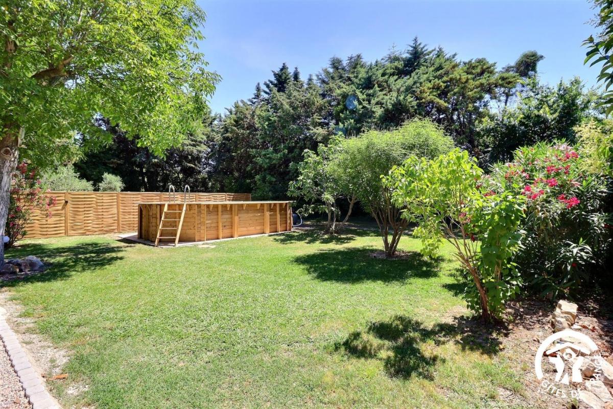 Vous pourrez profiter de son jardin privatif d’environ 900m² sans vis-à-vis avec salon de jardin et barbecue. Une piscine hors sol 6.7x4m avec fond plat (profondeur 1.2m) ouverte toute l’année et chauffée entre avril et octobre (selon la météo). De plain-pied, la maison se compose de :